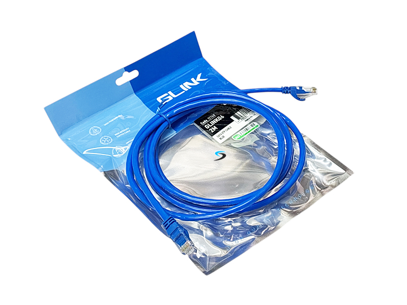 สายแลน CAT6 UTP สีน้ำเงิน เข้าหัวสำเร็จรูปสีขาว ความยาว 2 เมตร แบรนด์ GLINK รุ่น GLINK06 (Lan Cable Patch Cord) วัสดุเปลือกหุ้ม (Jacket) ชนิด PVC สำหรับงานเชื่อมต่อระบบเครือข่ายอินเตอร์เน็ตความเร็ว Gigabit (10/100/1000 Mbps) ระยะสั้น อาทิเช่น การเชื่อมต่อหน้าแผงกระจายสาย Patch Panal , Out Let หรือใช้เชื่อมต่อเร้าตอร์, Access Point จากอุปกรณ์ต้นทาง รวมถึงการเชื่อมต่อระบบแลนอื่นๆในระยะไม่เกิน 2 เมตร